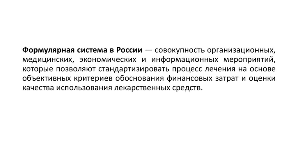 Формулярная система в России — совокупность организационных,медицинских, экономических и информационных мероприятий,