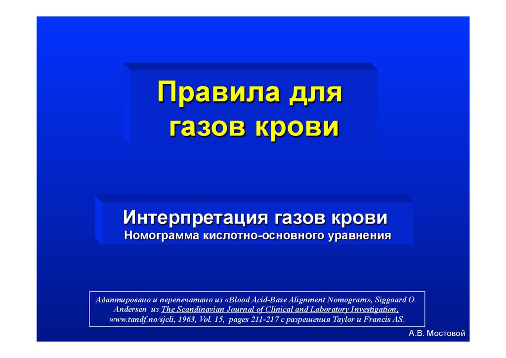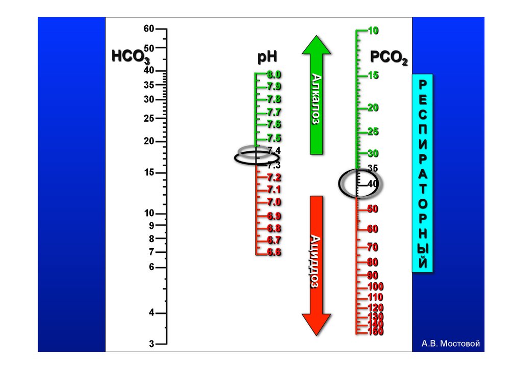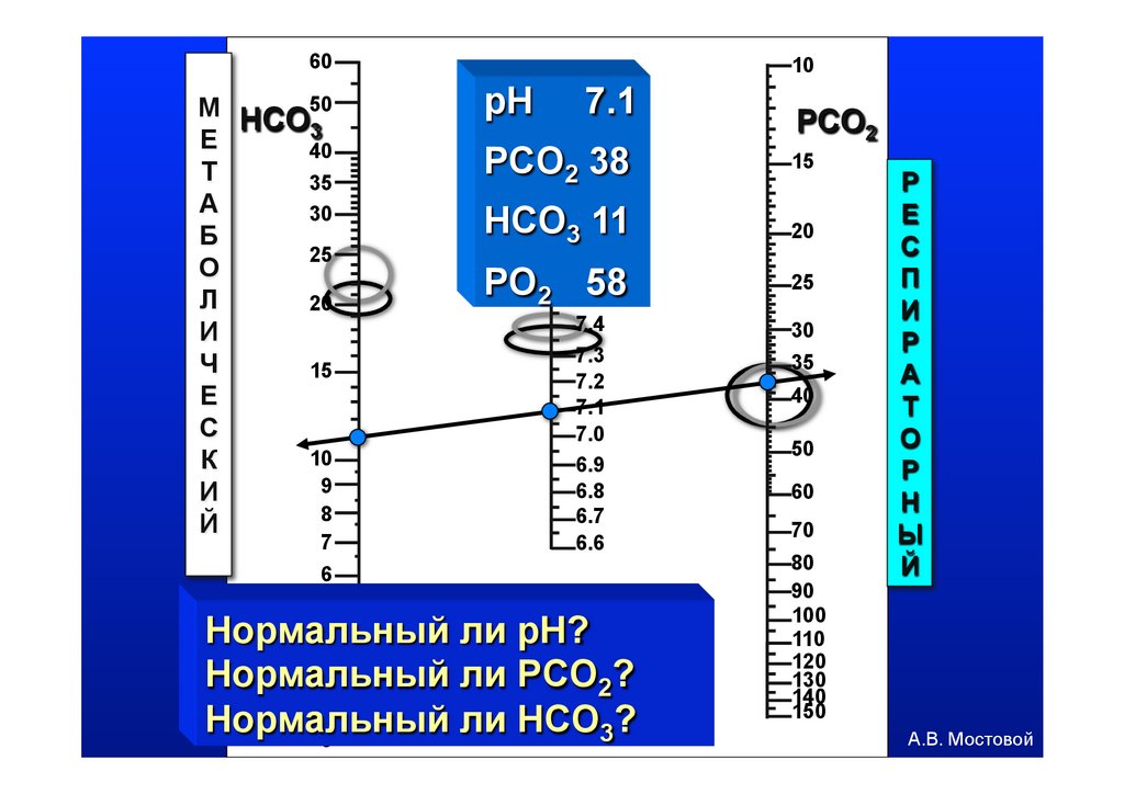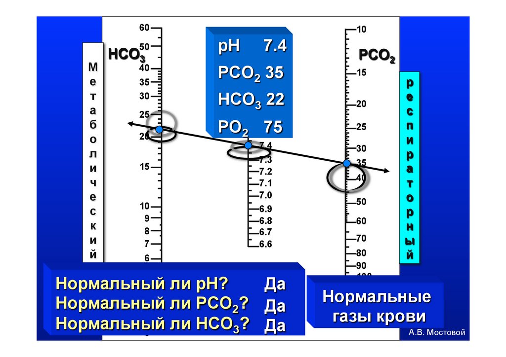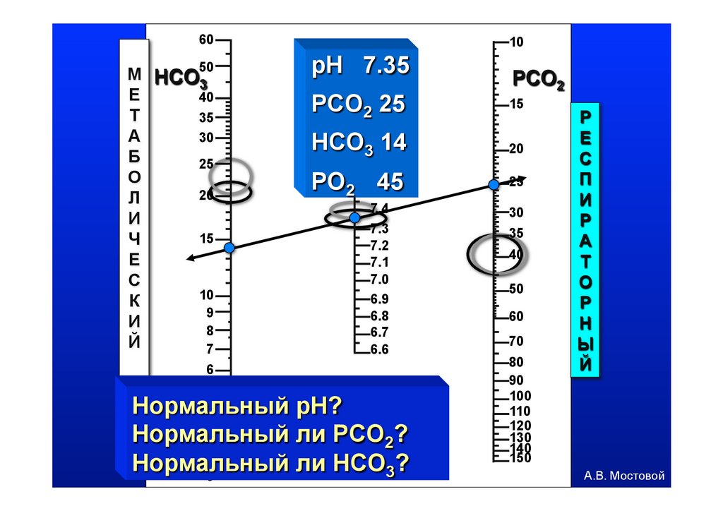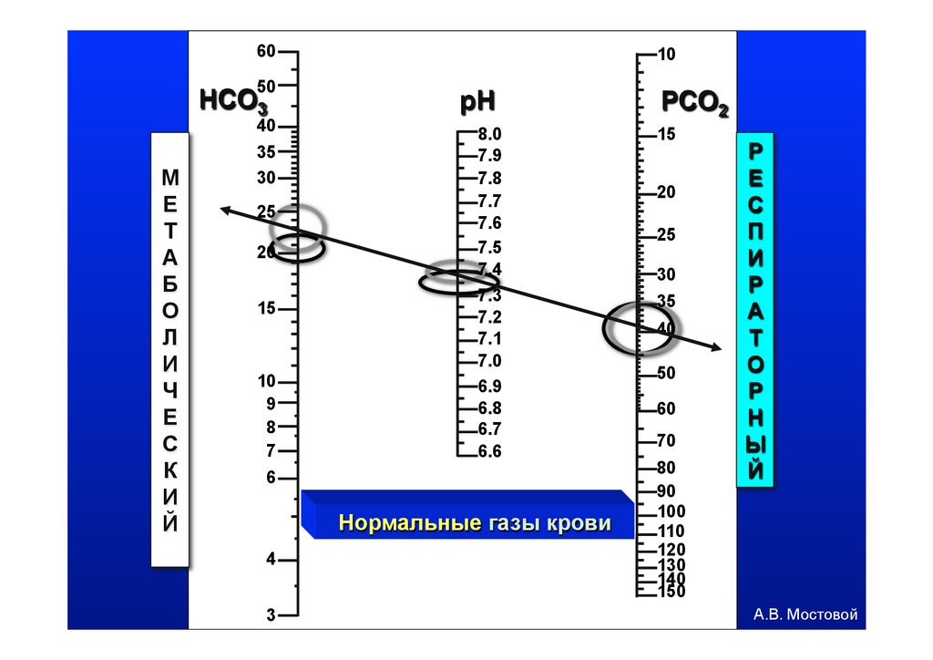 Адаптировано и перепечатано из «Blood Acid-Base Alignment Nomogram», Siggaard O.