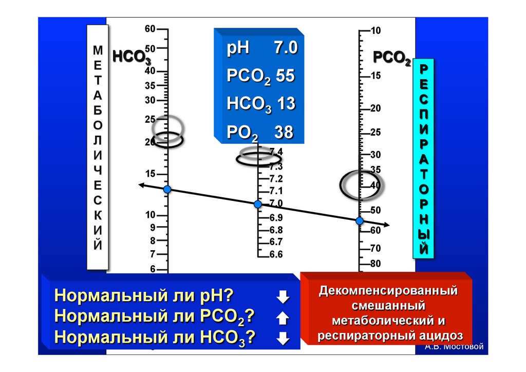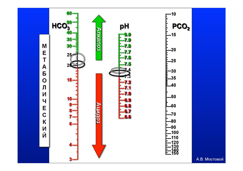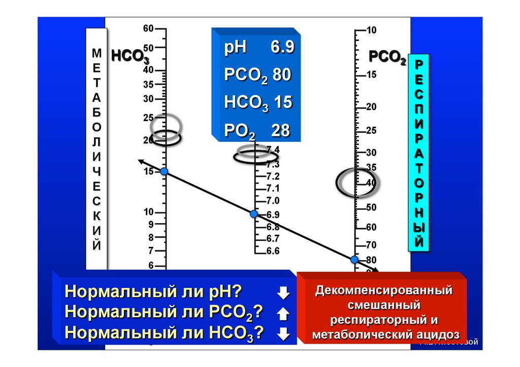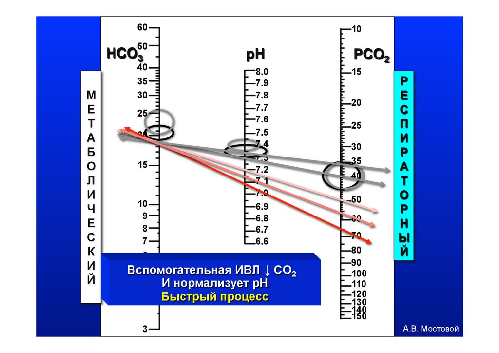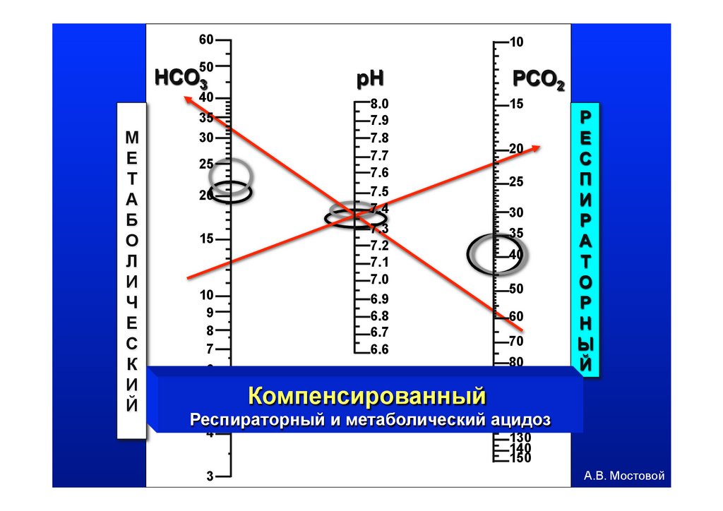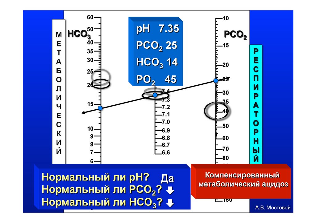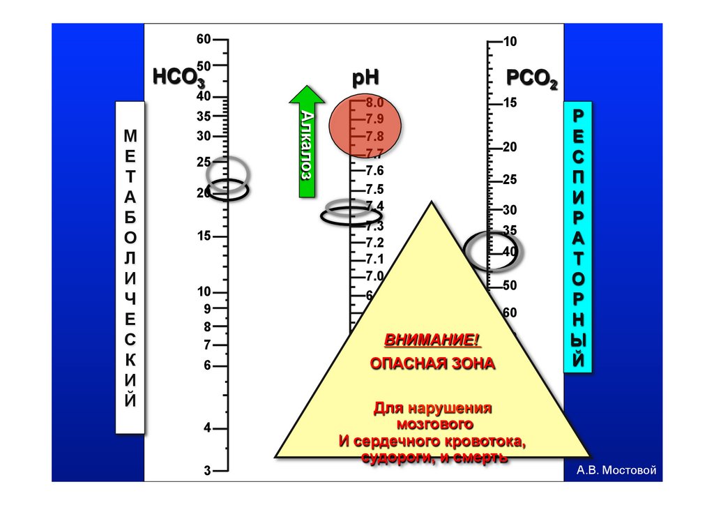 Адаптировано и перепечатано из «Blood Acid-Base Alignment Nomogram», Siggaard O.