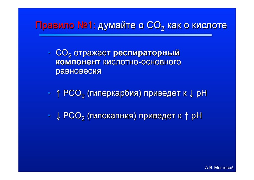 Правило №1: думайте о CO2 как о кислоте• CO2 отражает респираторный