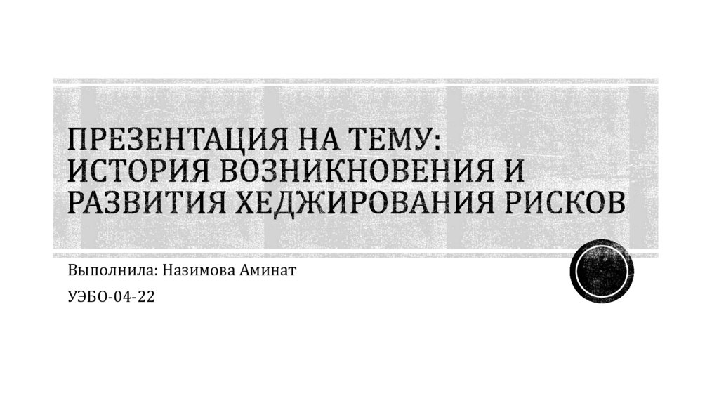 1. Презентация на тему: История возникновения и развития хеджирования рисков