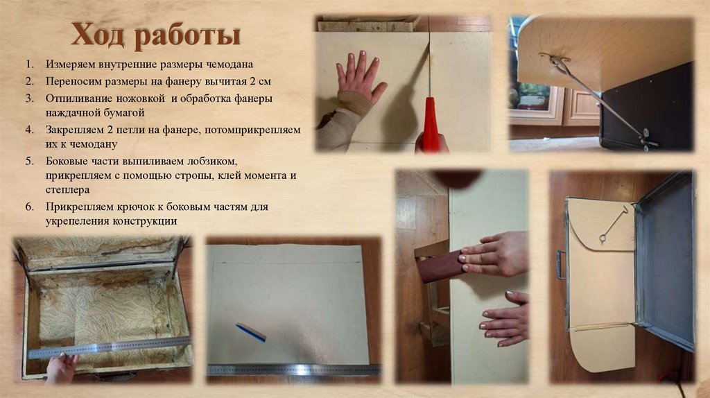 Чемодан, фанера (0.8 см), пеноплекс, тубусы от фольги