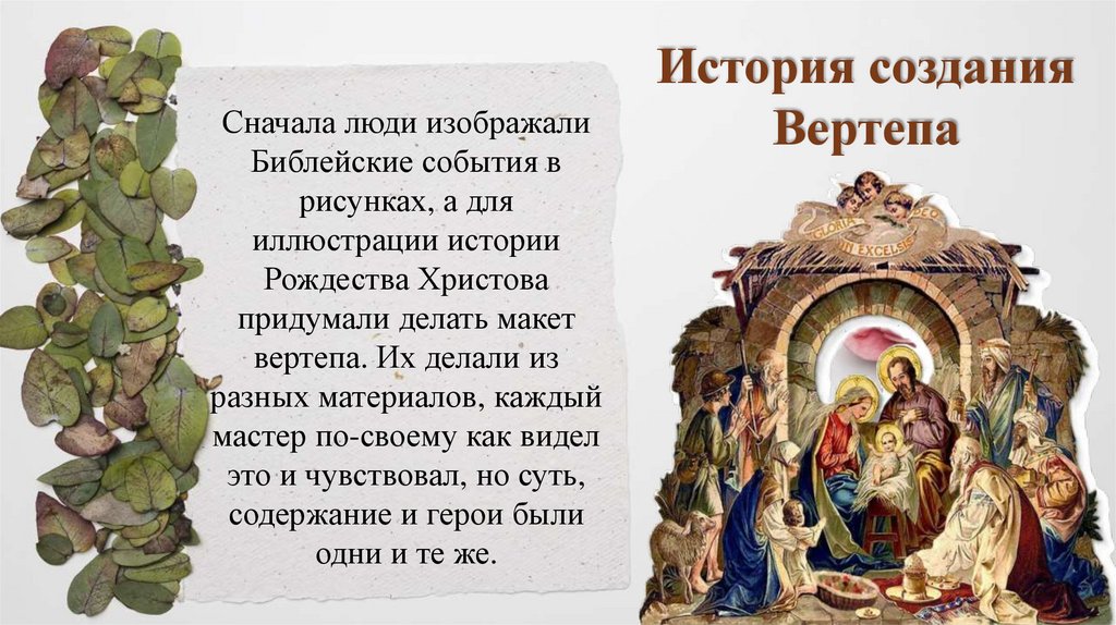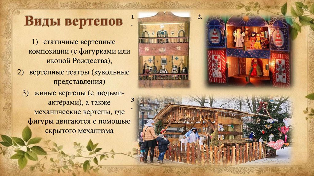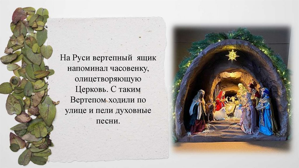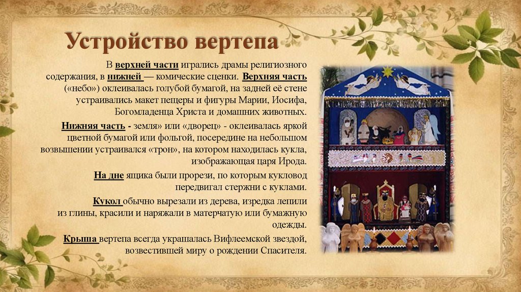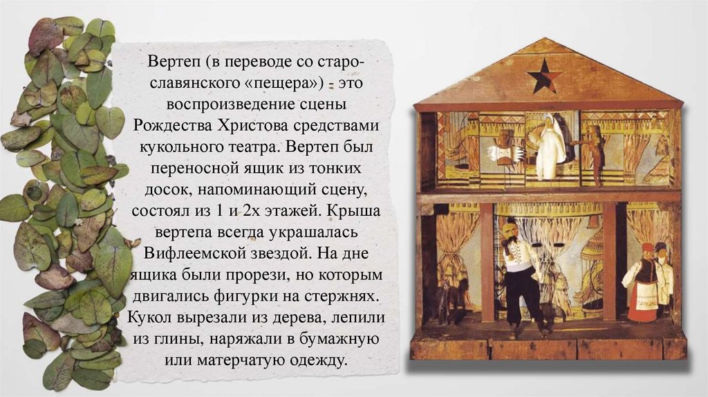 Вертеп (в переводе со старославянского «пещера») - этовоспроизведение сцены
