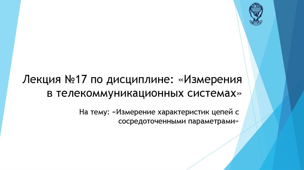 1. Лекция №17 по дисциплине: «Измерения в телекоммуникационных системах»