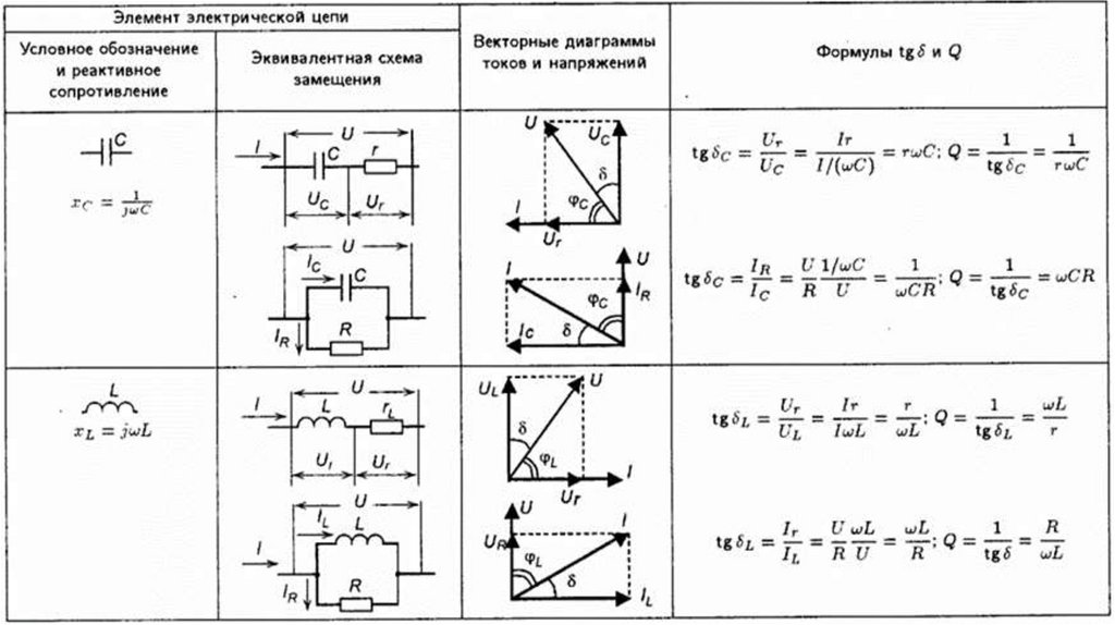 1. Эквивалентные схемы конденсатора, катушки индуктивности и