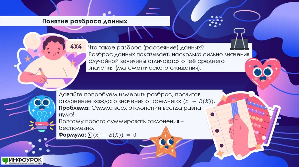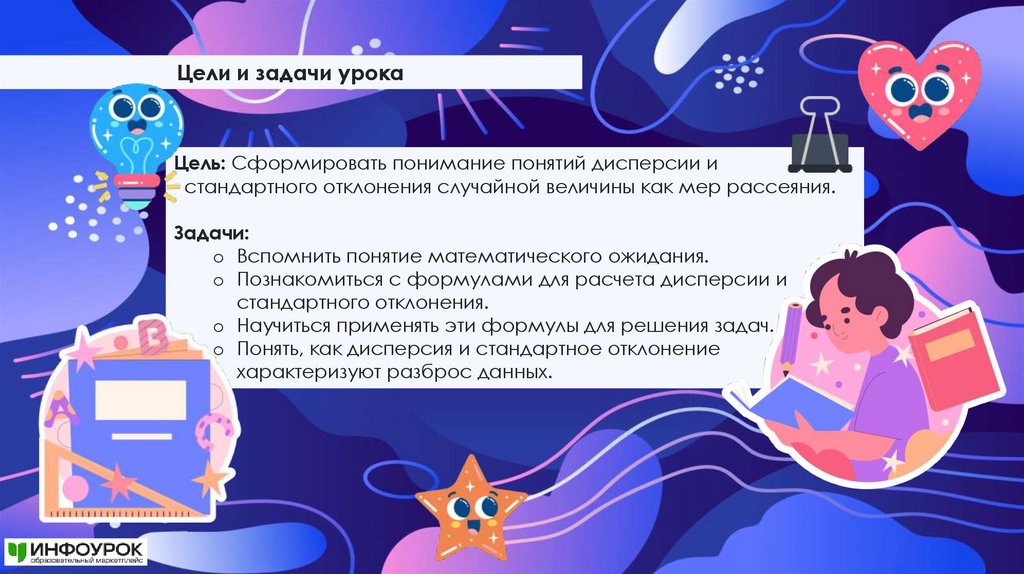 Цели и задачи урокаЦель: Сформировать понимание понятий дисперсии и