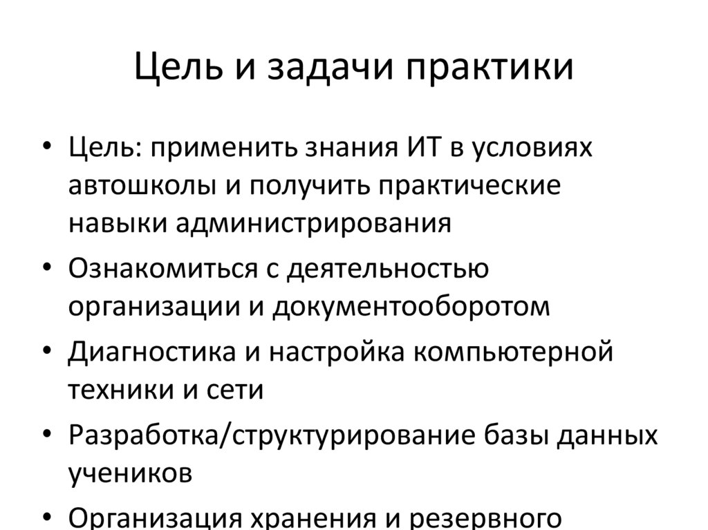Цель и задачи практики• Цель: применить знания ИТ в условиях