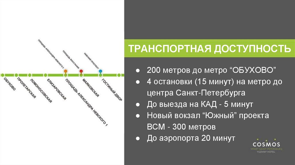 ТРАНСПОРТНАЯ ДОСТУПНОСТЬ● 200 метров до метро “ОБУХОВО”