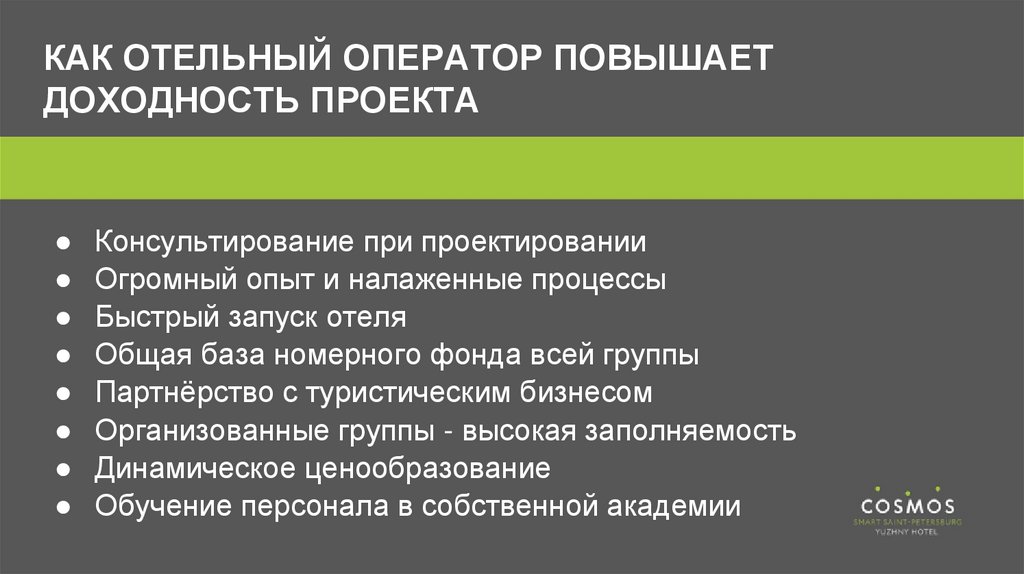 КАК ОТЕЛЬНЫЙ ОПЕРАТОР ПОВЫШАЕТДОХОДНОСТЬ ПРОЕКТА
