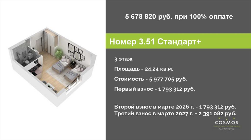 5 678 820 руб. при 100% оплатеНомер 3.51 Стандарт+
