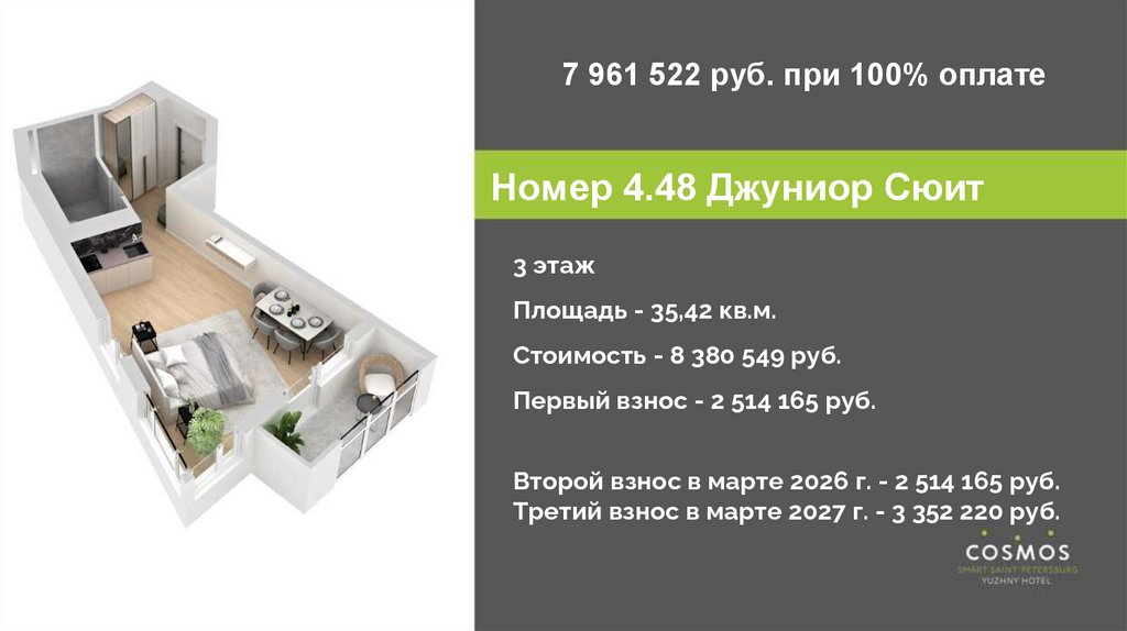 7 961 522 руб. при 100% оплатеНомер 4.48 Джуниор Сюит