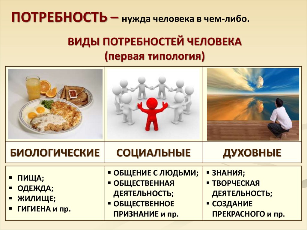 ПОТРЕБНОСТЬ – нужда человека в чем-либо.ВИДЫ ПОТРЕБНОСТЕЙ ЧЕЛОВЕКА