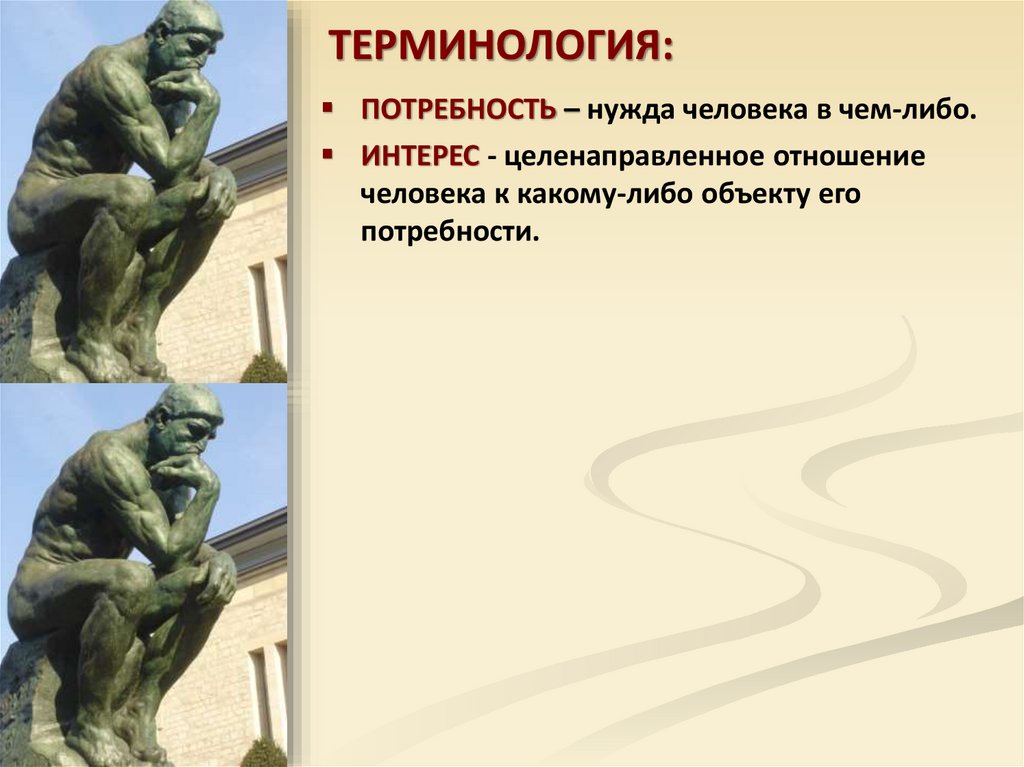 ТЕРМИНОЛОГИЯ:ПОТРЕБНОСТЬ – нужда человека в чем-либо.