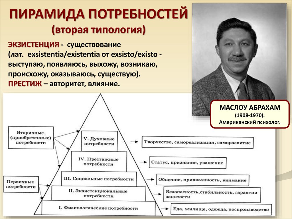 ПИРАМИДА ПОТРЕБНОСТЕЙ(вторая типология)