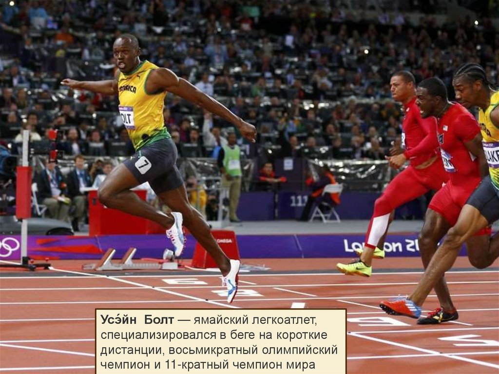 Усэ́йн Болт — ямайский легкоатлет,специализировался в беге на короткие
