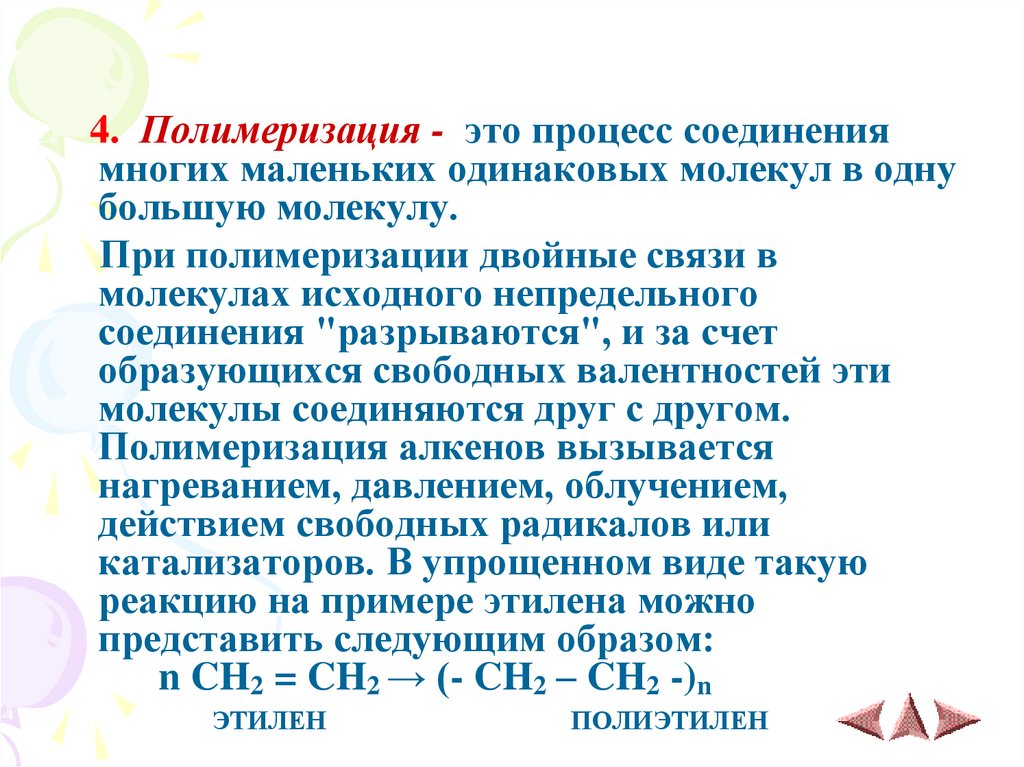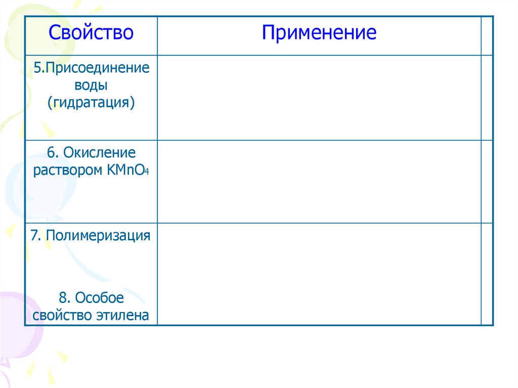 4. Этилен – газ, почти без запаха, плохо растворим в воде.