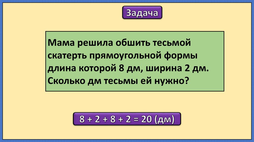 Мама решила обшить тесьмойскатерть прямоугольной формы