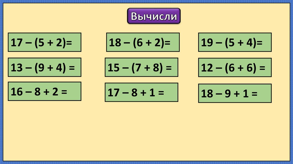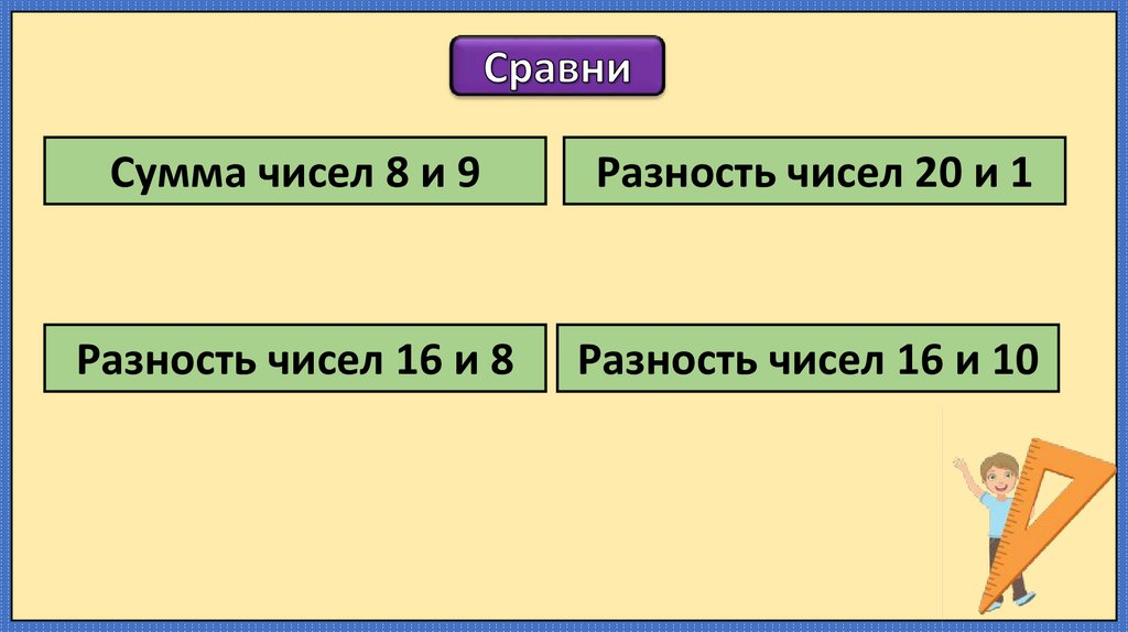 Сумма чисел 8 и 9Разность чисел 20 и 1