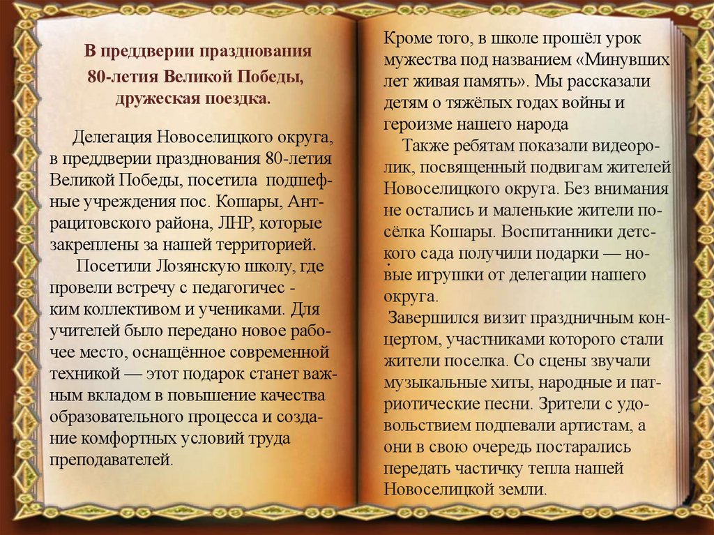 Великой Победы, посетила подшефные учреждения пос. Кошары, Антрацитовского района, ЛНР, которые