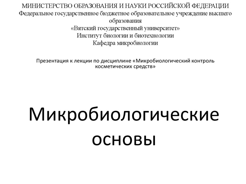 Презентация к лекции по дисциплине «Микробиологический контроль