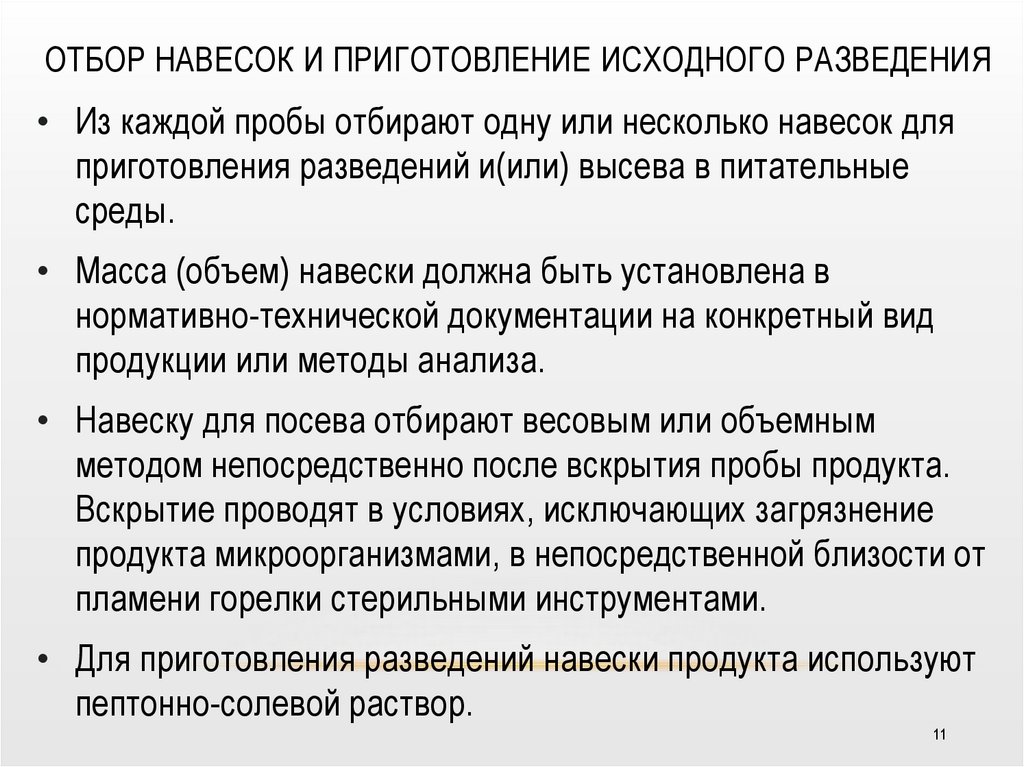 среды вносят навески продуктов, или разведения навески, или