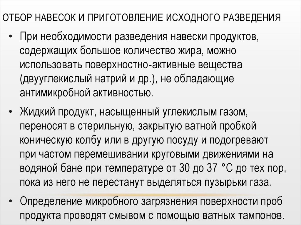Данный метод не применим для отбора проб от продуктов,