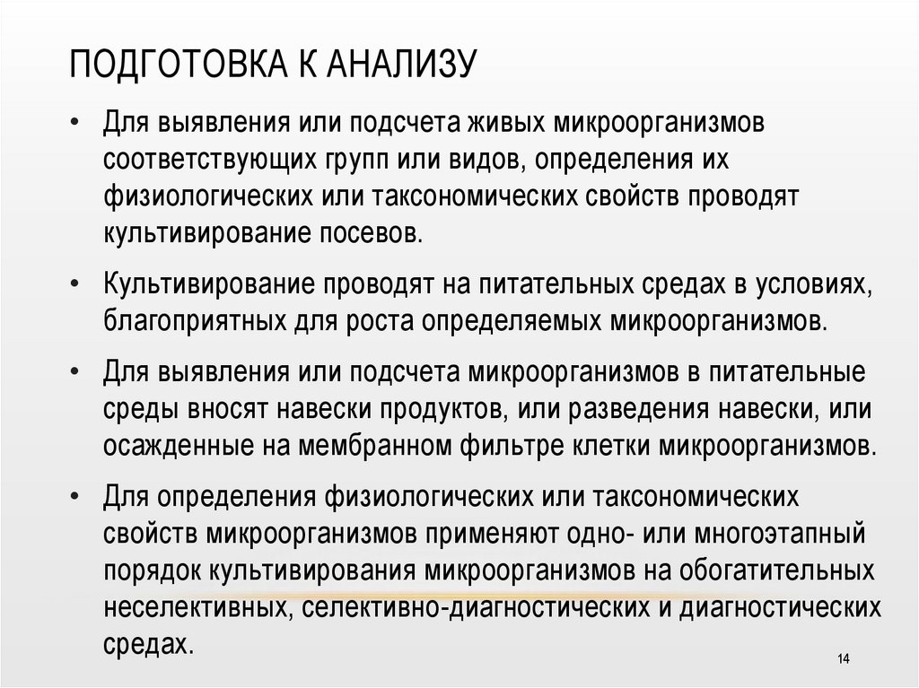 ПОДГОТОВКА К АНАЛИЗУ• Для выявления или подсчета живых микроорганизмов