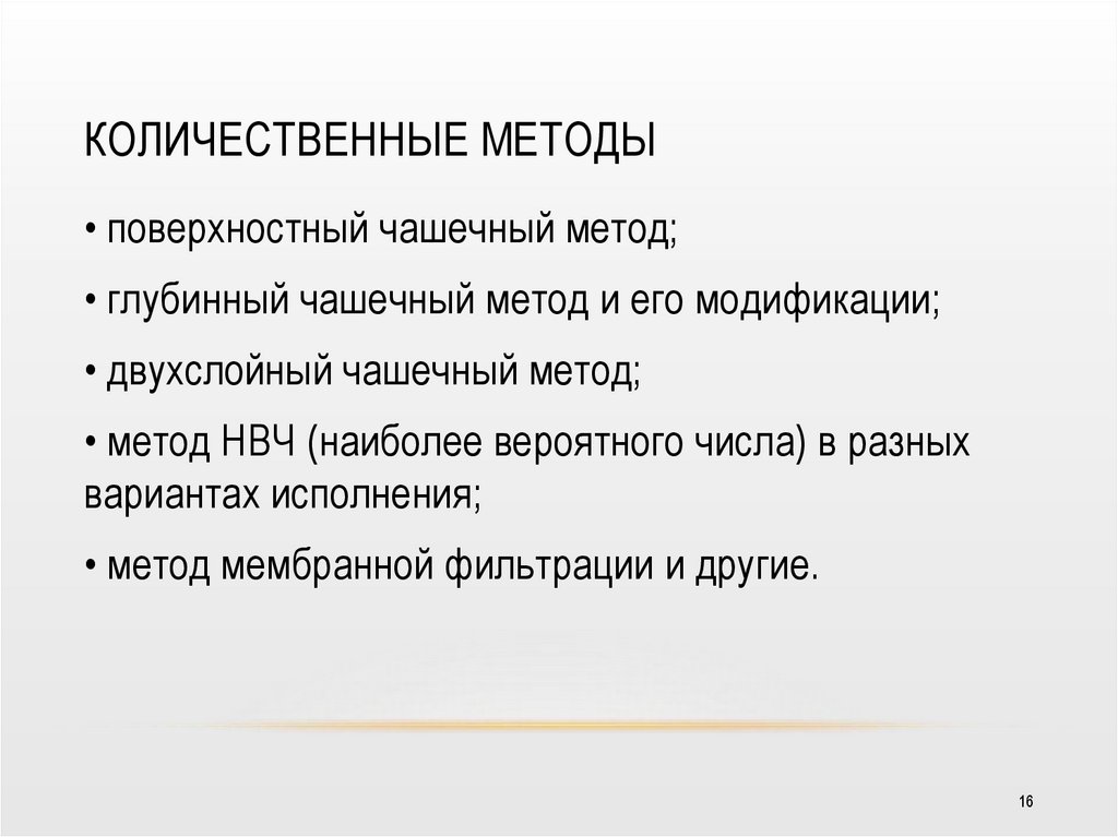 КОЛИЧЕСТВЕННЫЕ МЕТОДЫ• поверхностный чашечный метод;