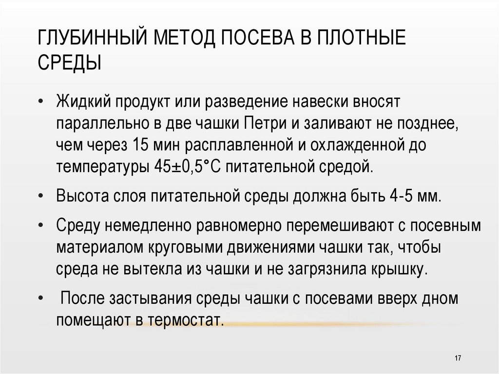 ПОВЕРХНОСТНЫЙ МЕТОД ПОСЕВА НАПЛОТНЫЕ СРЕДЫ