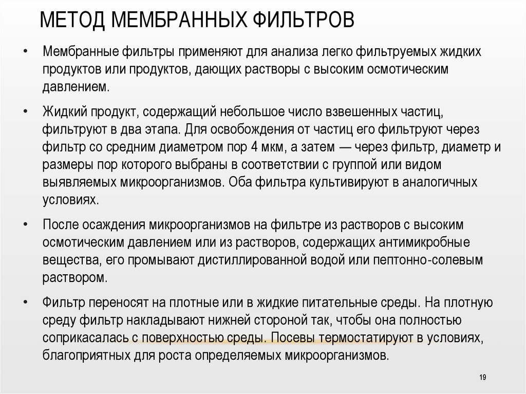 • метод мембранной фильтрации и другие.