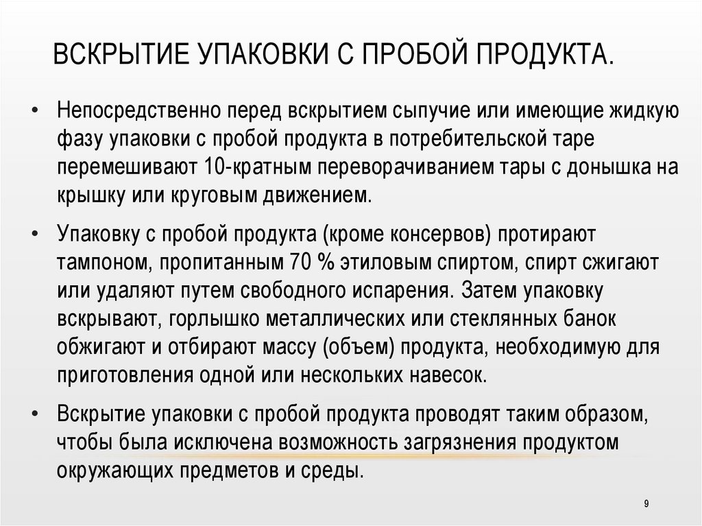 пробы продукта, то проверяют герметичность тары.