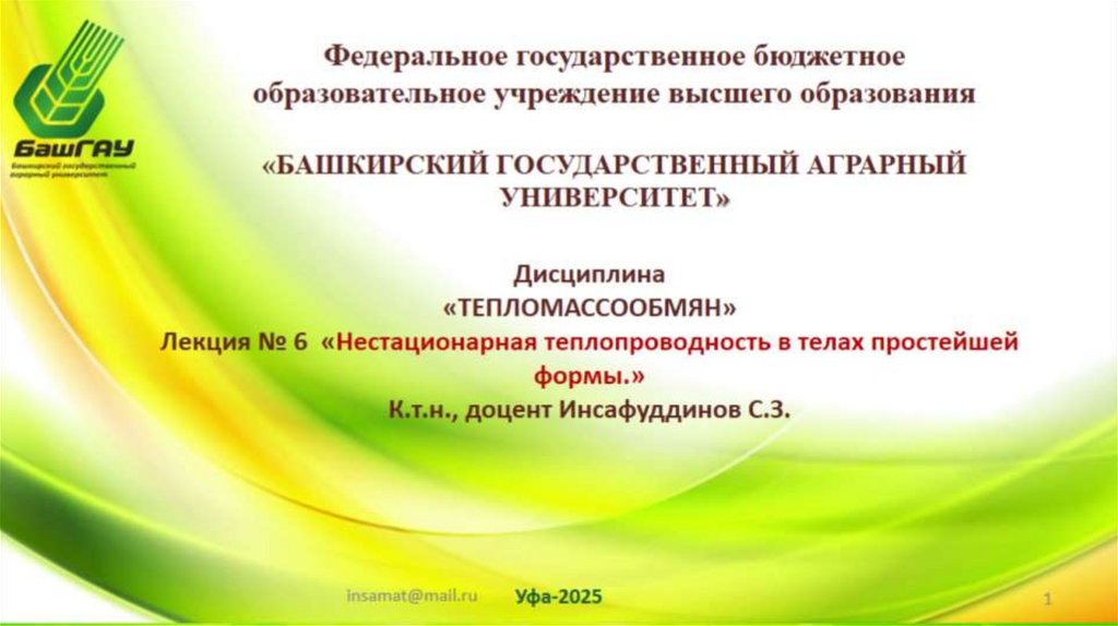 лекция 5 Нестационарная теплопроводность yh
