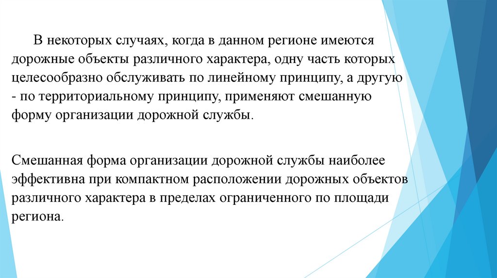 Сетевая форма организации дорожной службы построена по территориальнопроизводственному принципу и используется преимущественно для