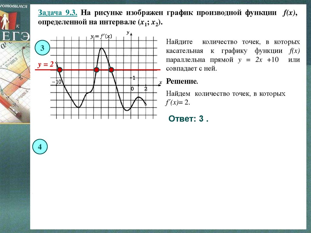 Задача 9.2. На рисунке изображен график производной функции f(x),определенной на интервале (x1; x2). Найдите количество точек, в