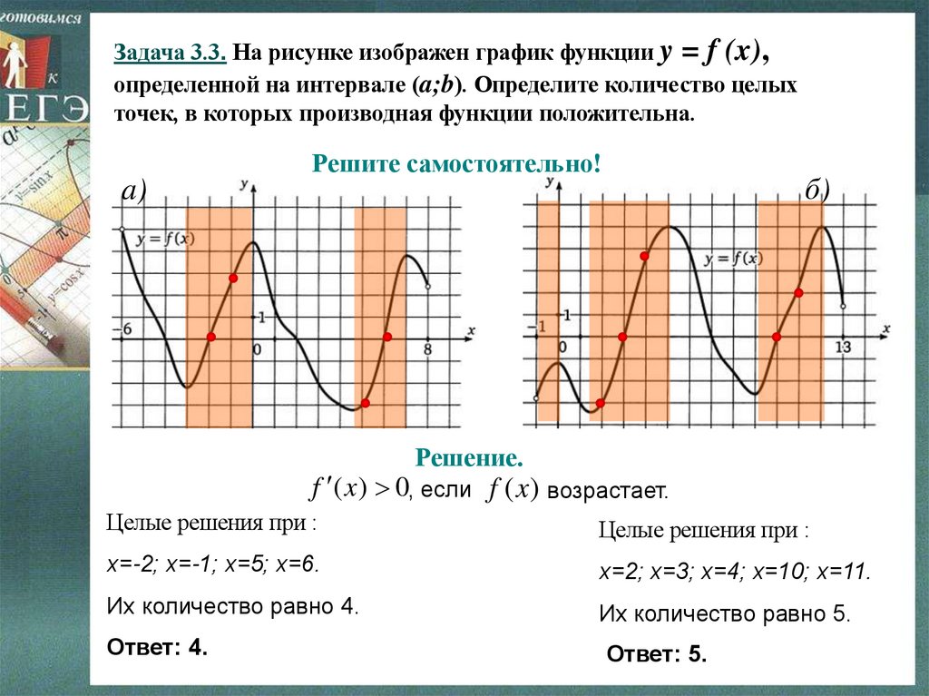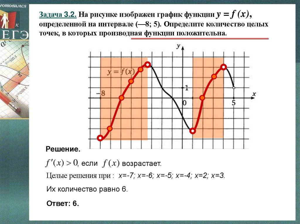 Задача 3.1. На рисунке изображен график функции y = f (x),определенной на интервале (-8; 3). Определите количество целых