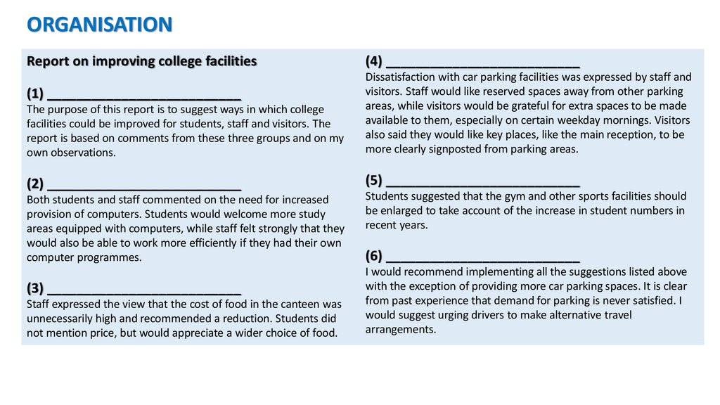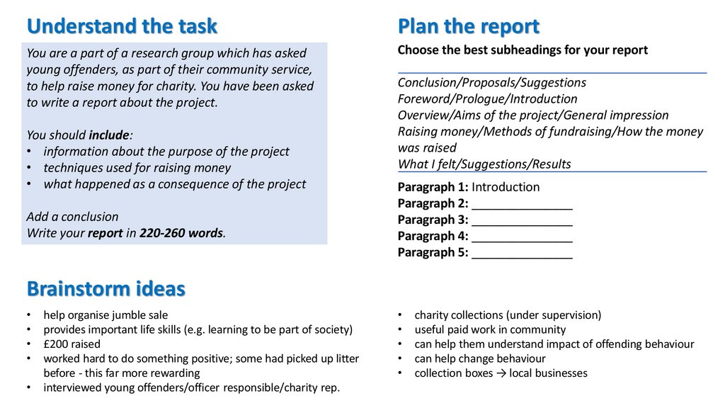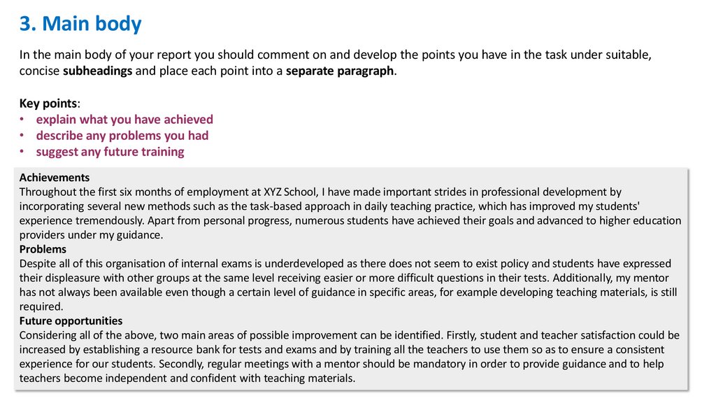 3. Main bodyIn the main body of your report you should comment on and develop the points you have in the task under suitable,
