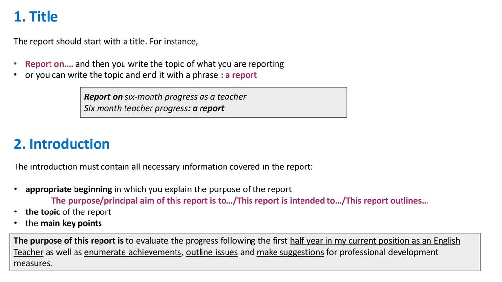 The purpose of this report is to evaluate the progress following the first half year in my current position as an English