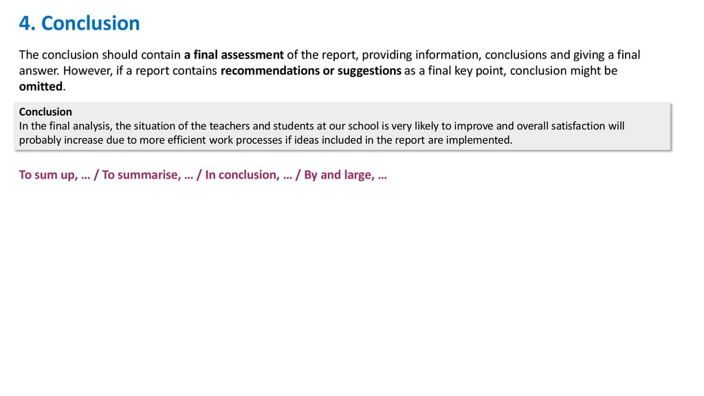 4. ConclusionThe conclusion should contain a final assessment of the report, providing information, conclusions and giving a final