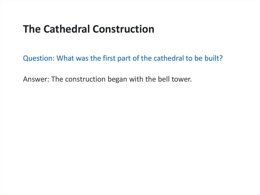 The Cathedral ConstructionQuestion: What was the first part of the cathedral to be built?
