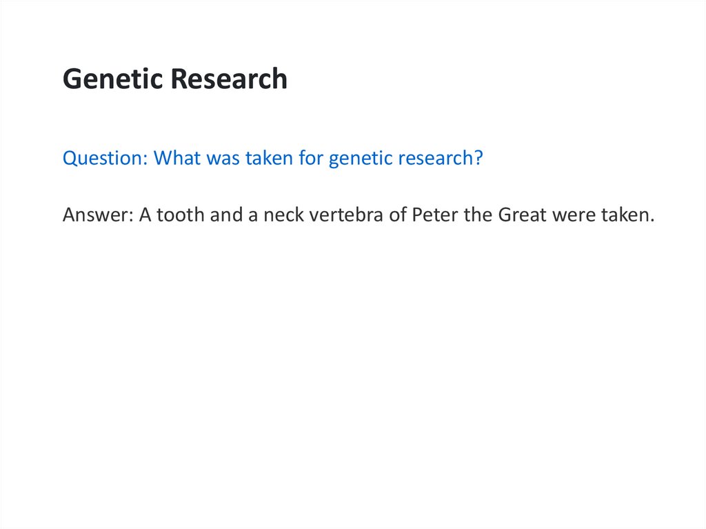 Genetic ResearchQuestion: What was taken for genetic research?