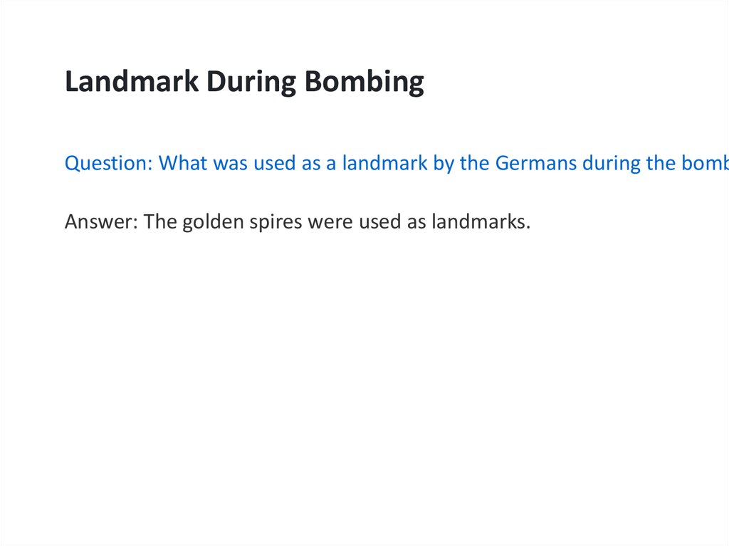 Landmark During BombingQuestion: What was used as a landmark by the Germans during the bomb