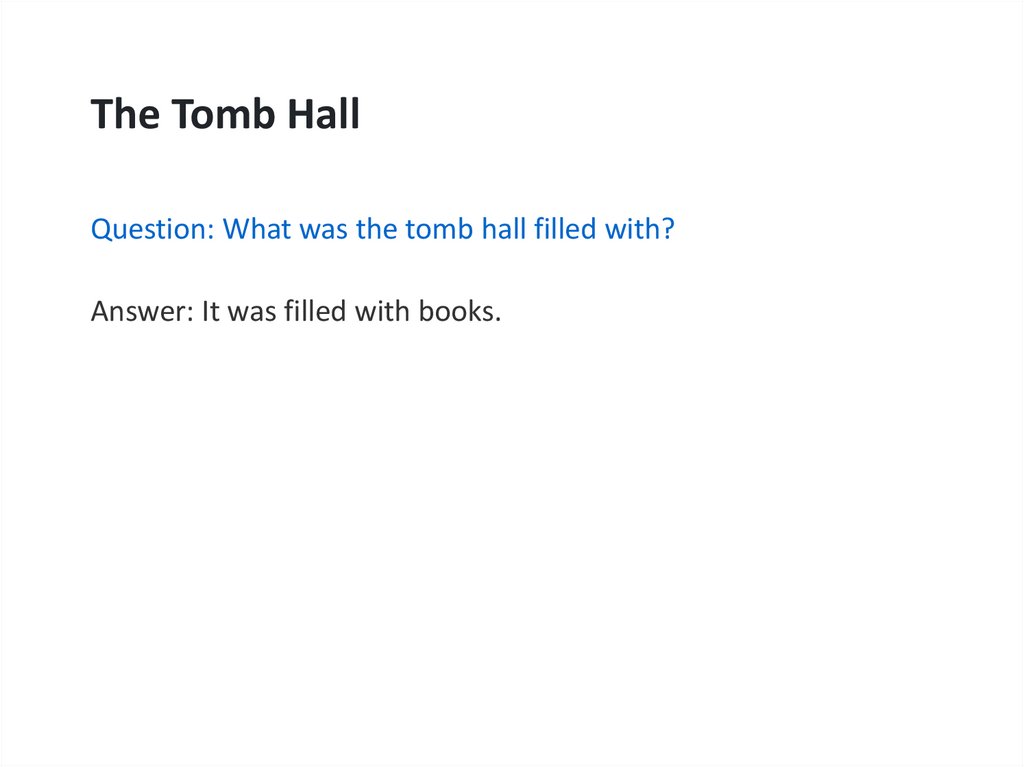 The Tomb HallQuestion: What was the tomb hall filled with?