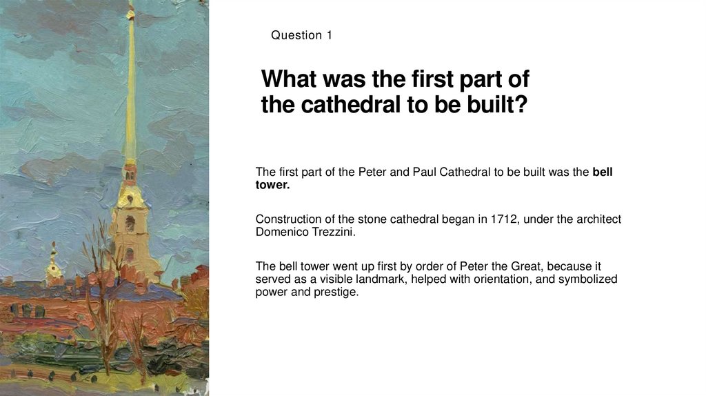 The first part of the Peter and Paul Cathedral to be built was the bell