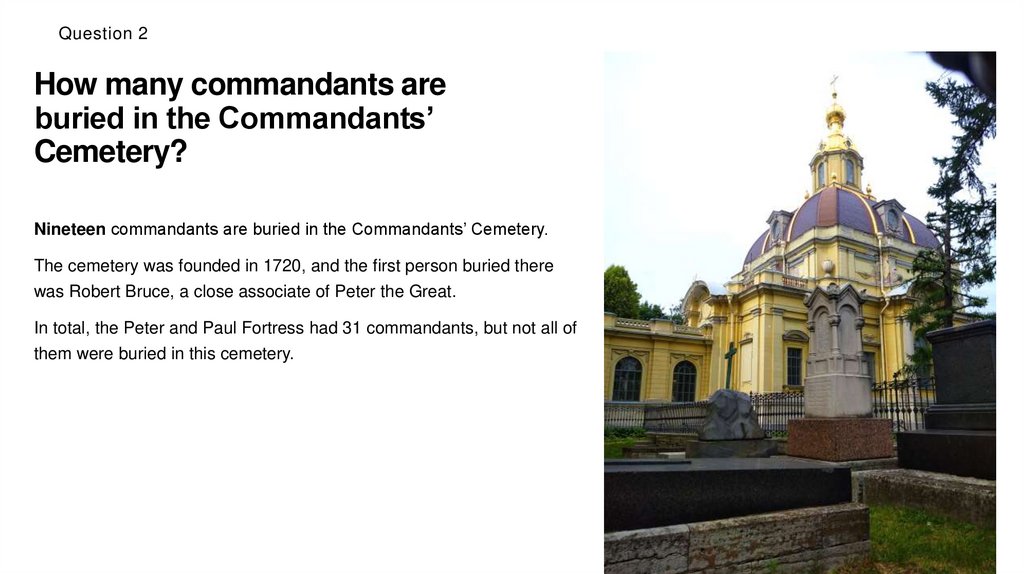 In total, the Peter and Paul Fortress had 31 commandants, but not all of