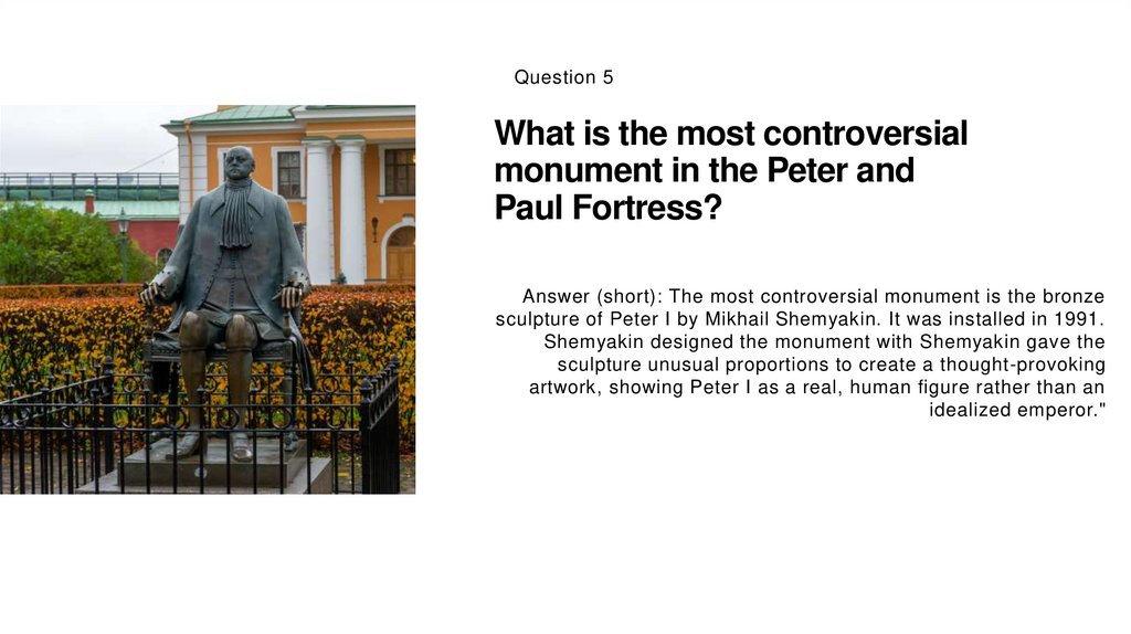 sculpture of Peter I by Mikhail Shemyakin. It was installed in 1991.
