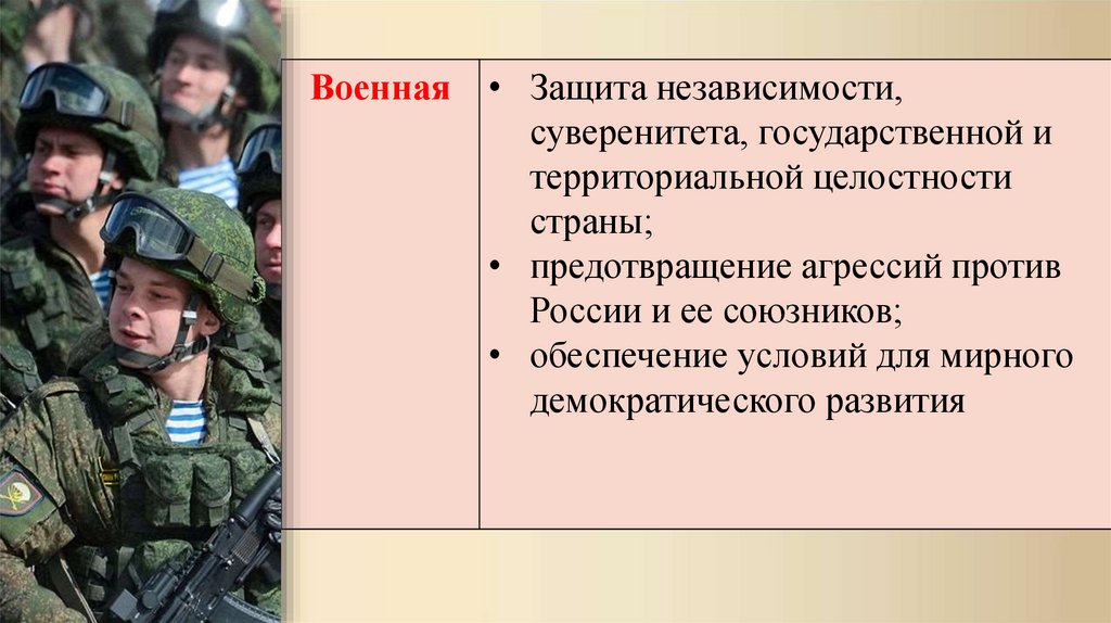 Сдерживание военных и военно-политическихугроз безопасности или интересам Российской
