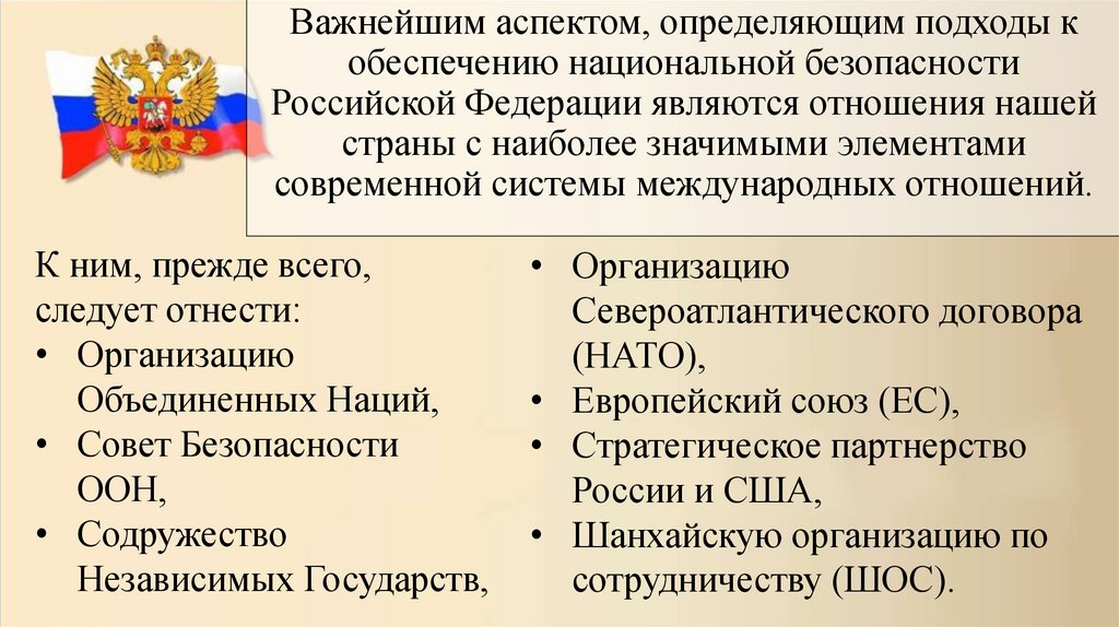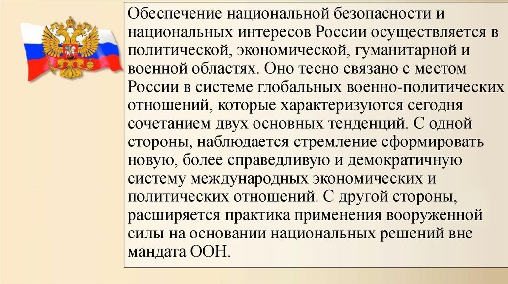 Обеспечение национальной безопасности инациональных интересов России осуществляется в