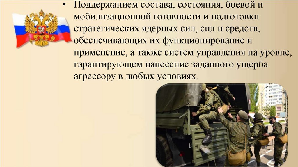 • Поддержанием состава, состояния, боевой имобилизационной готовности и подготовки
