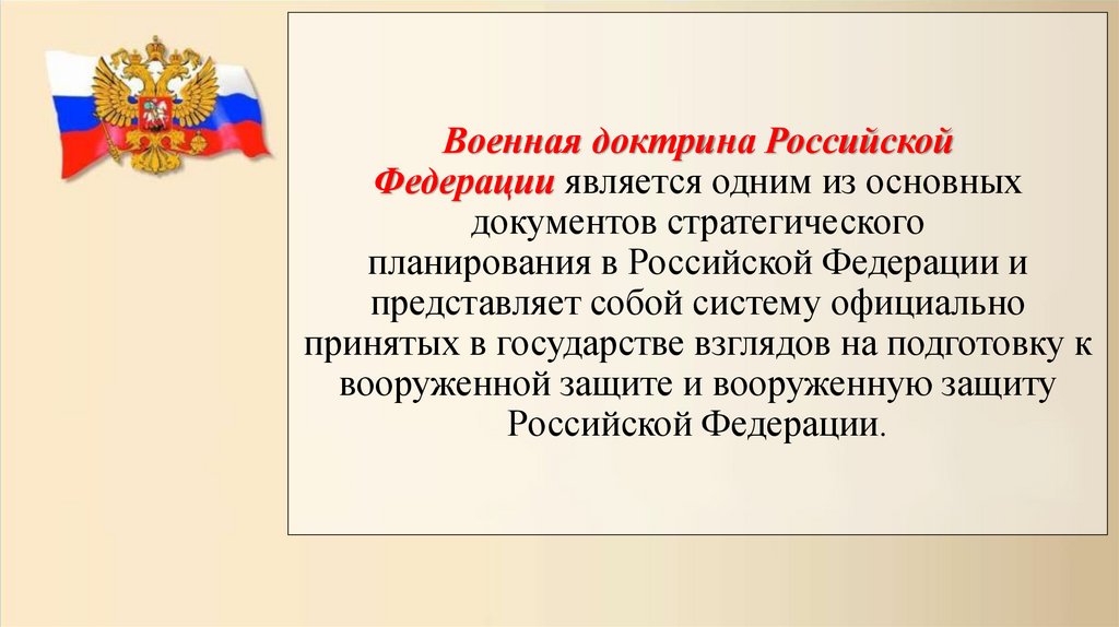 Для обороны с применением средств вооружённойборьбы создаются Вооружённые силы Российской