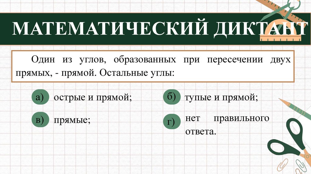 МАТЕМАТИЧЕСКИЙ ДИКТАНТОдин из углов, образованных при пересечении двух